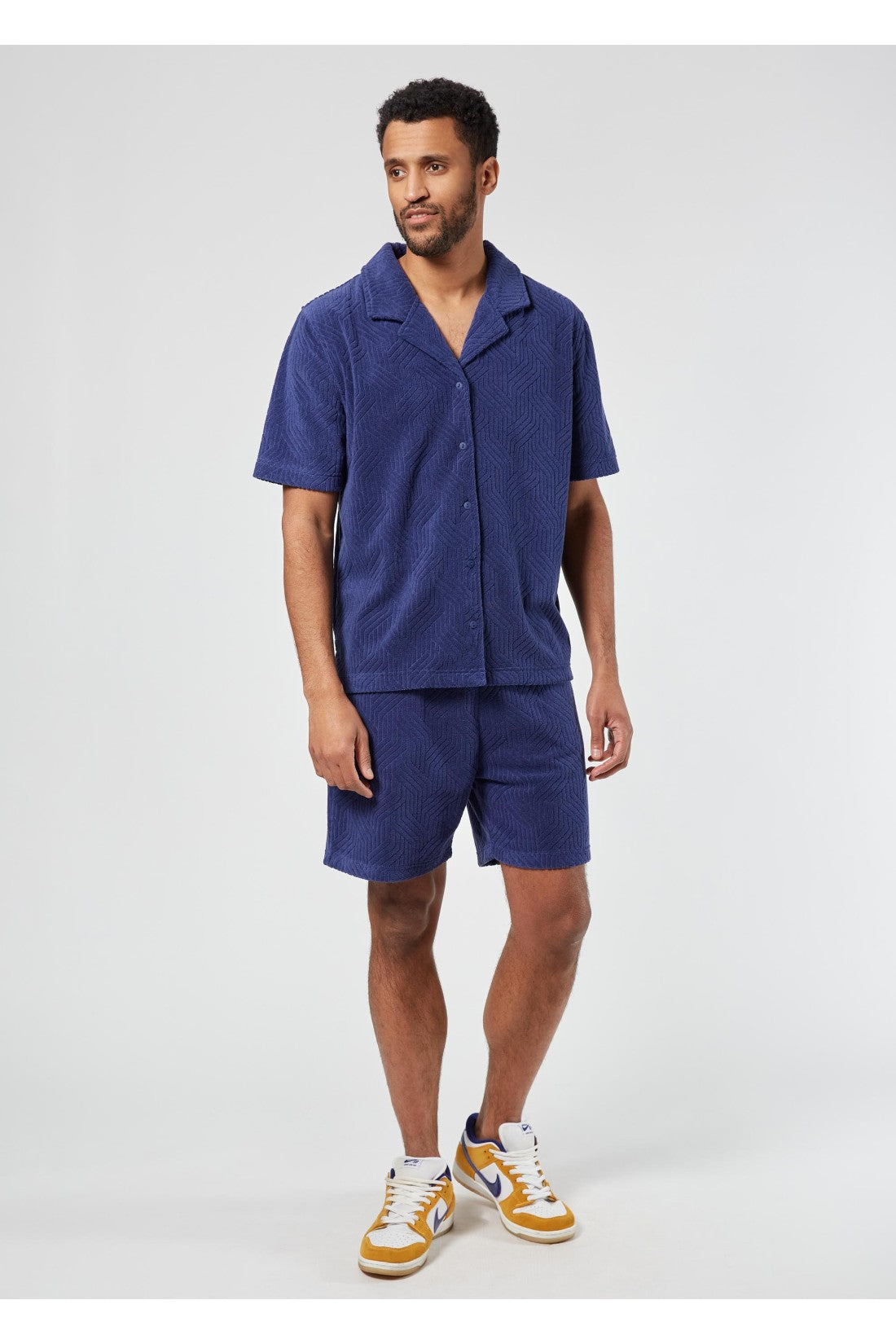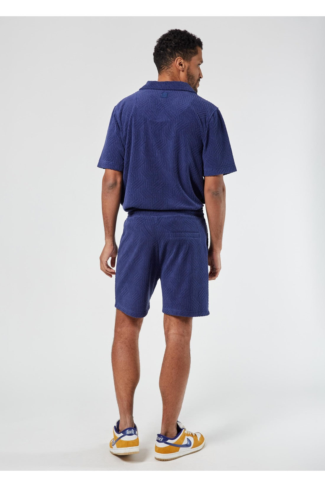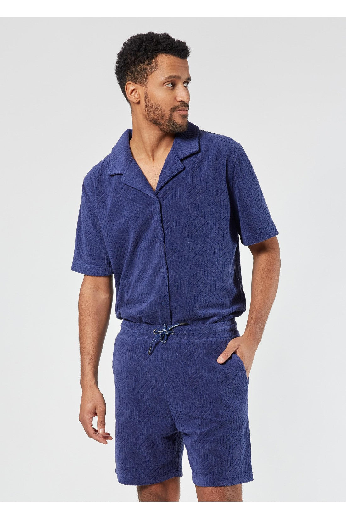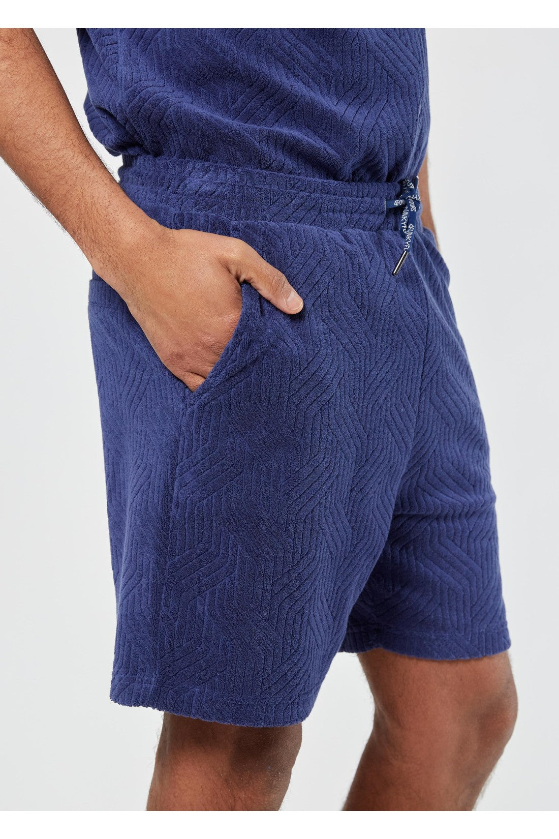 Pantalones cortos con patrón gráfico, cintura elástica con cordón y bolsillos. Color: Azul