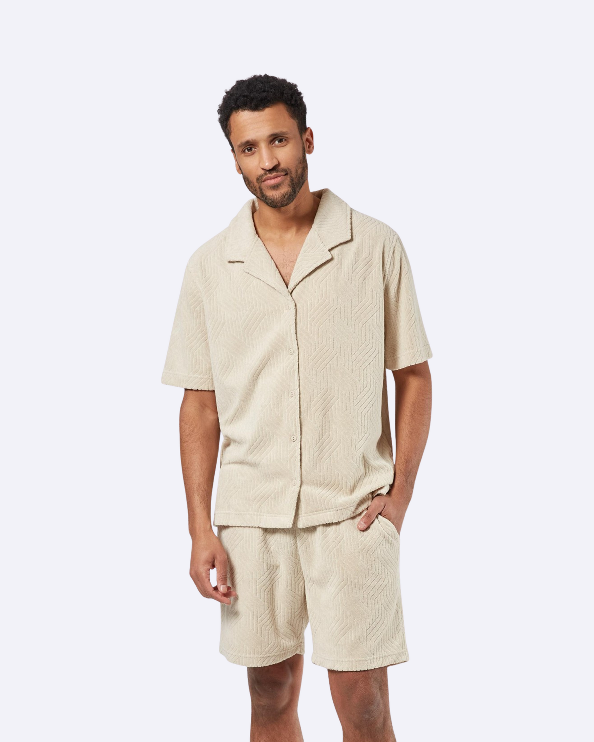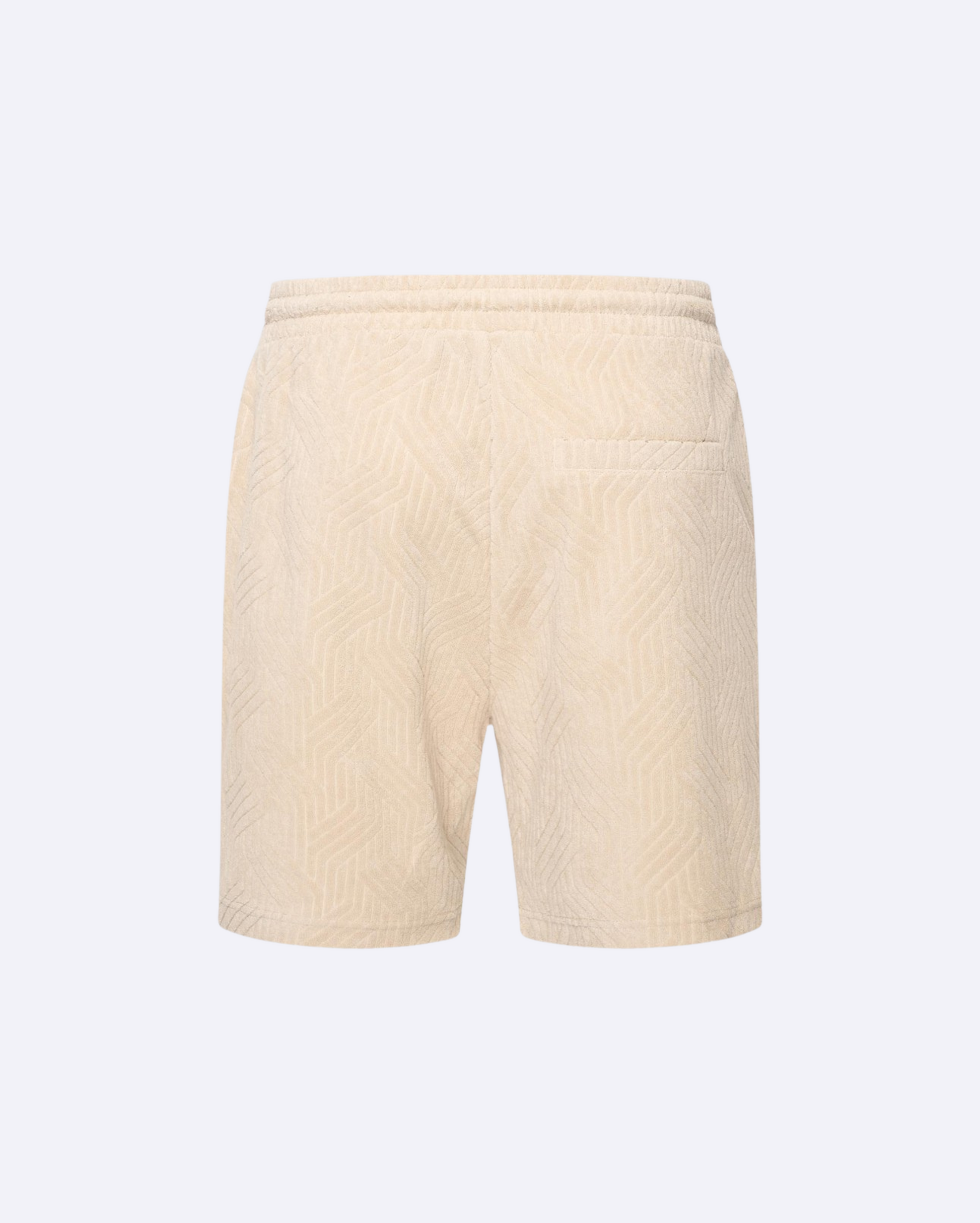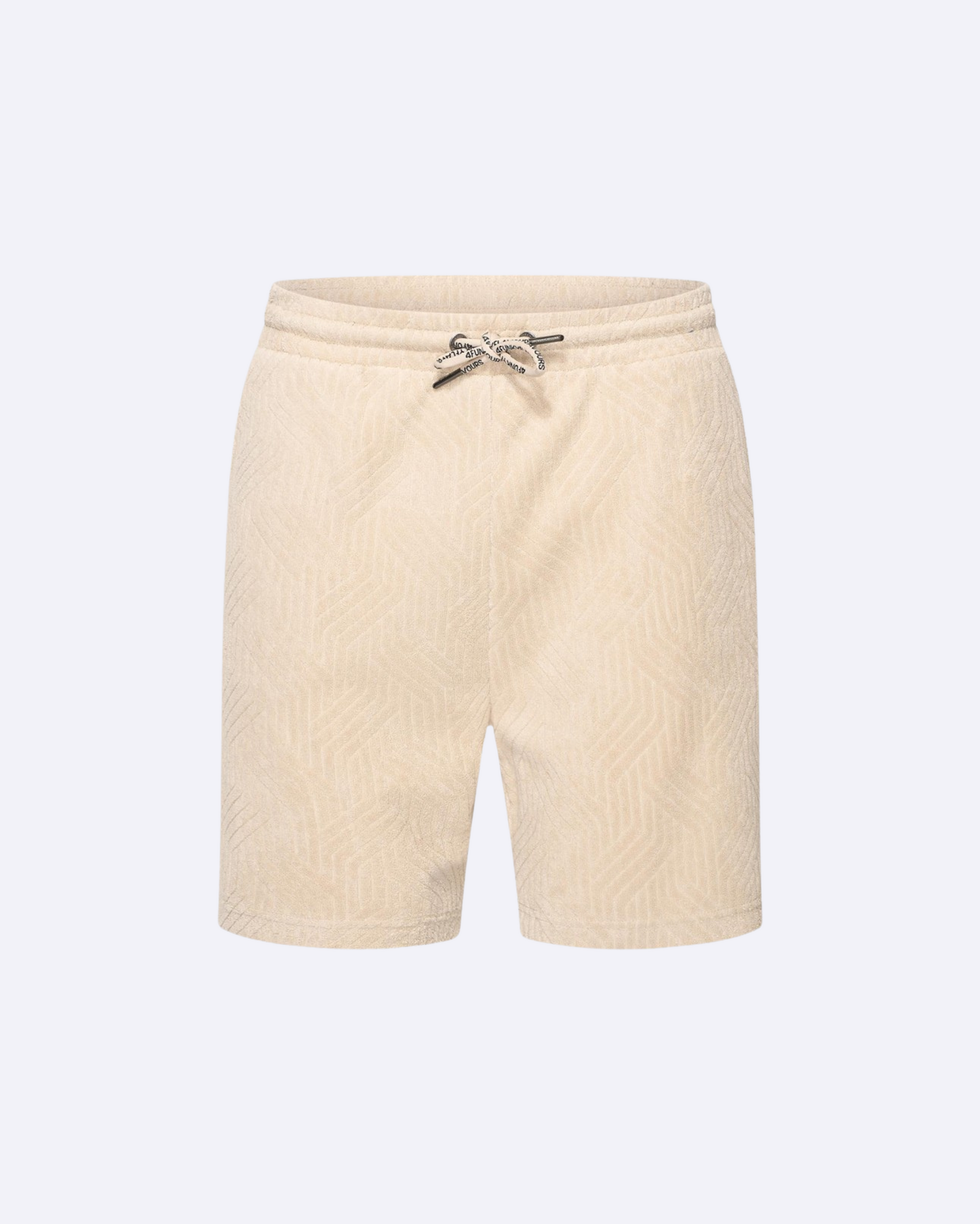 Pantalones cortos con patrón gráfico, cintura elástica con cordón y bolsillos. Color: Crema