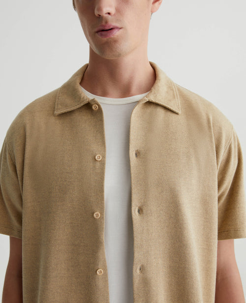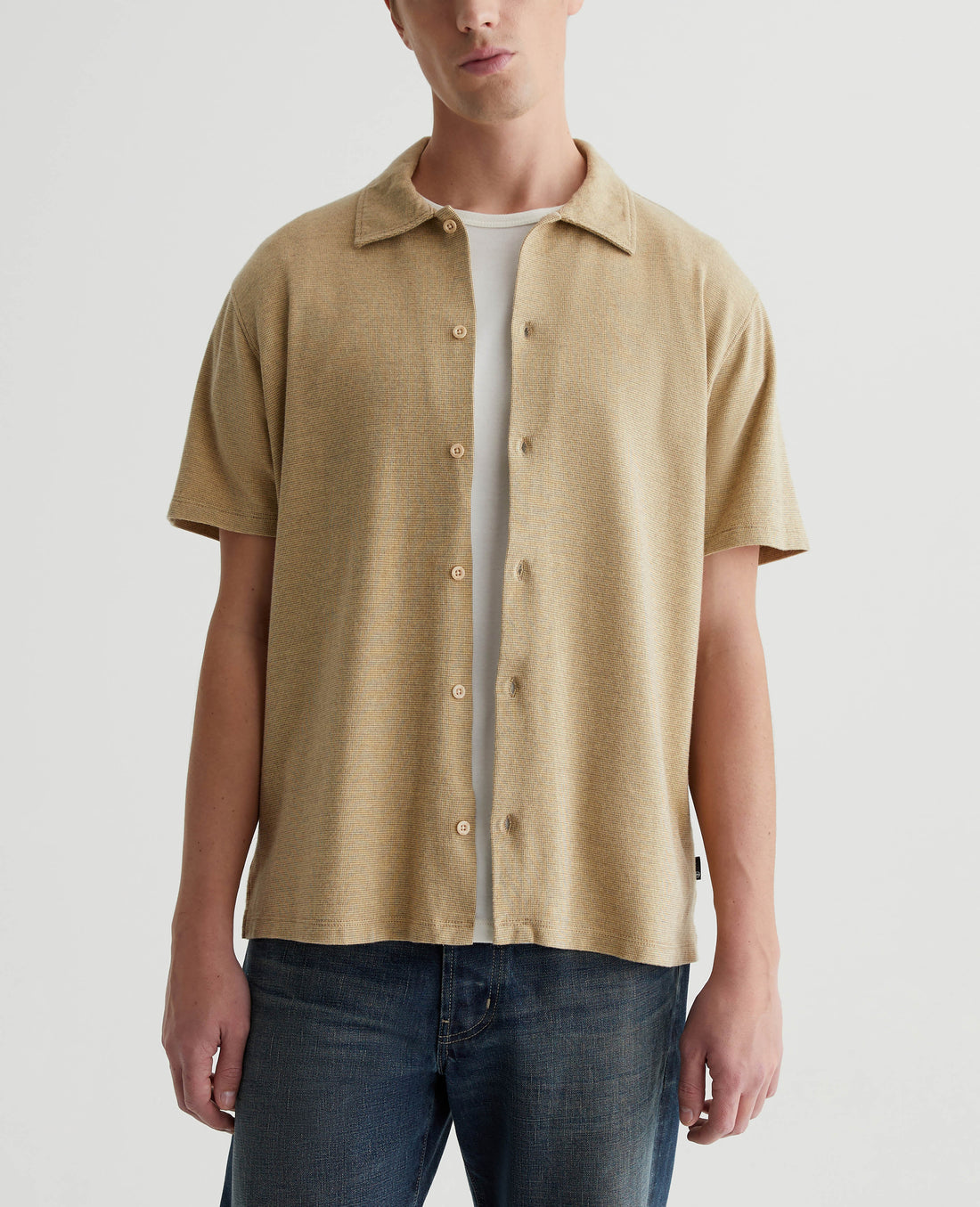 La camisa Nathaniel es una camisa de manga corta con botones de corte relajado, perfecta para el verano. Cuenta con un cuello puntiagudo y botones en la parte delantera, lo que lo hace genial y versátil tanto para ocasiones casuales como elegantes. 100% algodón.
