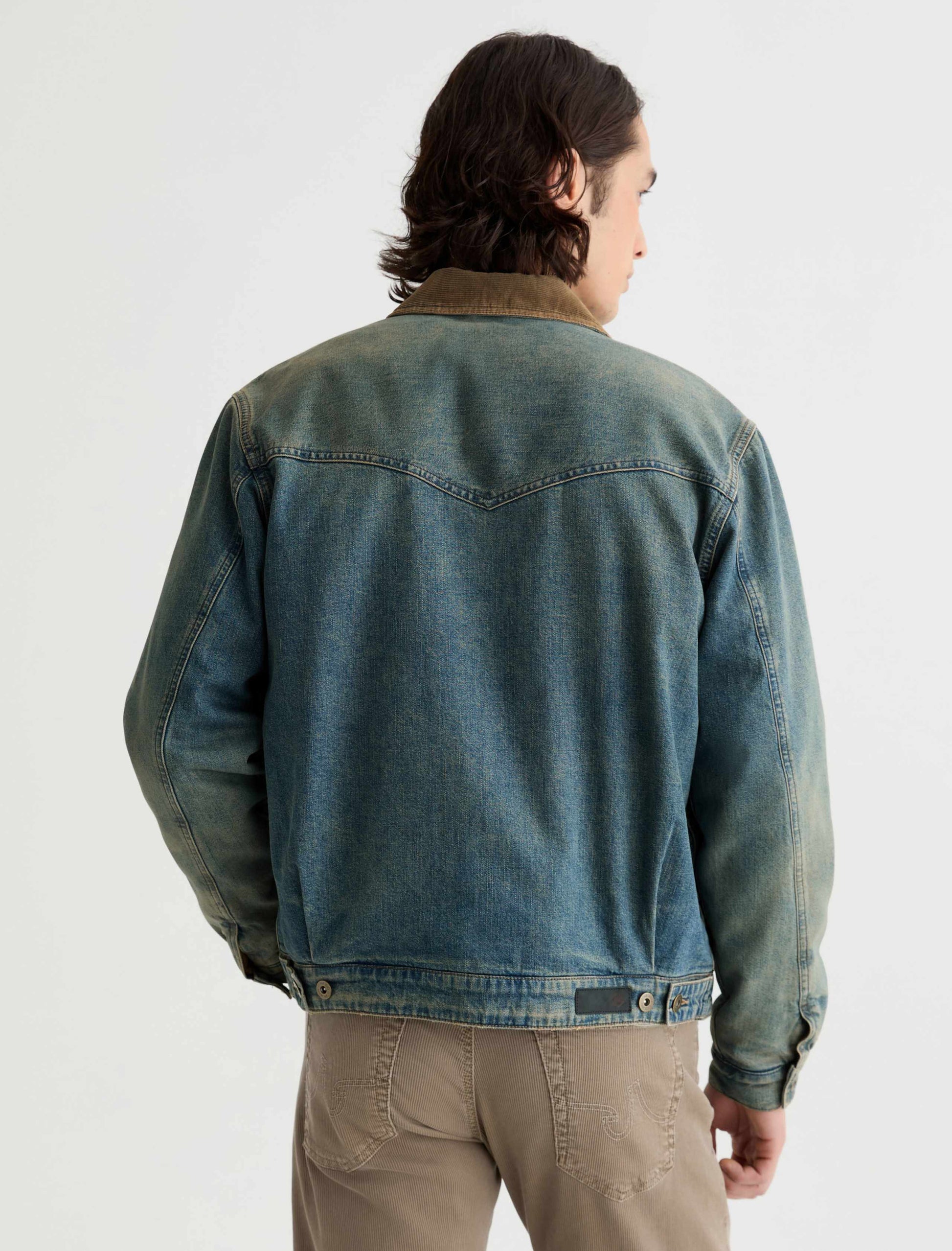 La chaqueta Philip es un abrigo moderno con un corte relajado y cuadrado que se estrecha en el dobladillo. Diseñado con yugos puntiagudos en la parte delantera y trasera, cuenta con un profundo lavado de espiga índigo con textura sutil, cremalleras de latón antiguo y un cuello de pana en contraste para un estilo adicional. Bolsillos con solapa, una tapeta de botones ocultos, ajustadores de cintura y una costura trasera central completan el look, mezclando sin esfuerzo un acabado refinado con la facilidad diaria.