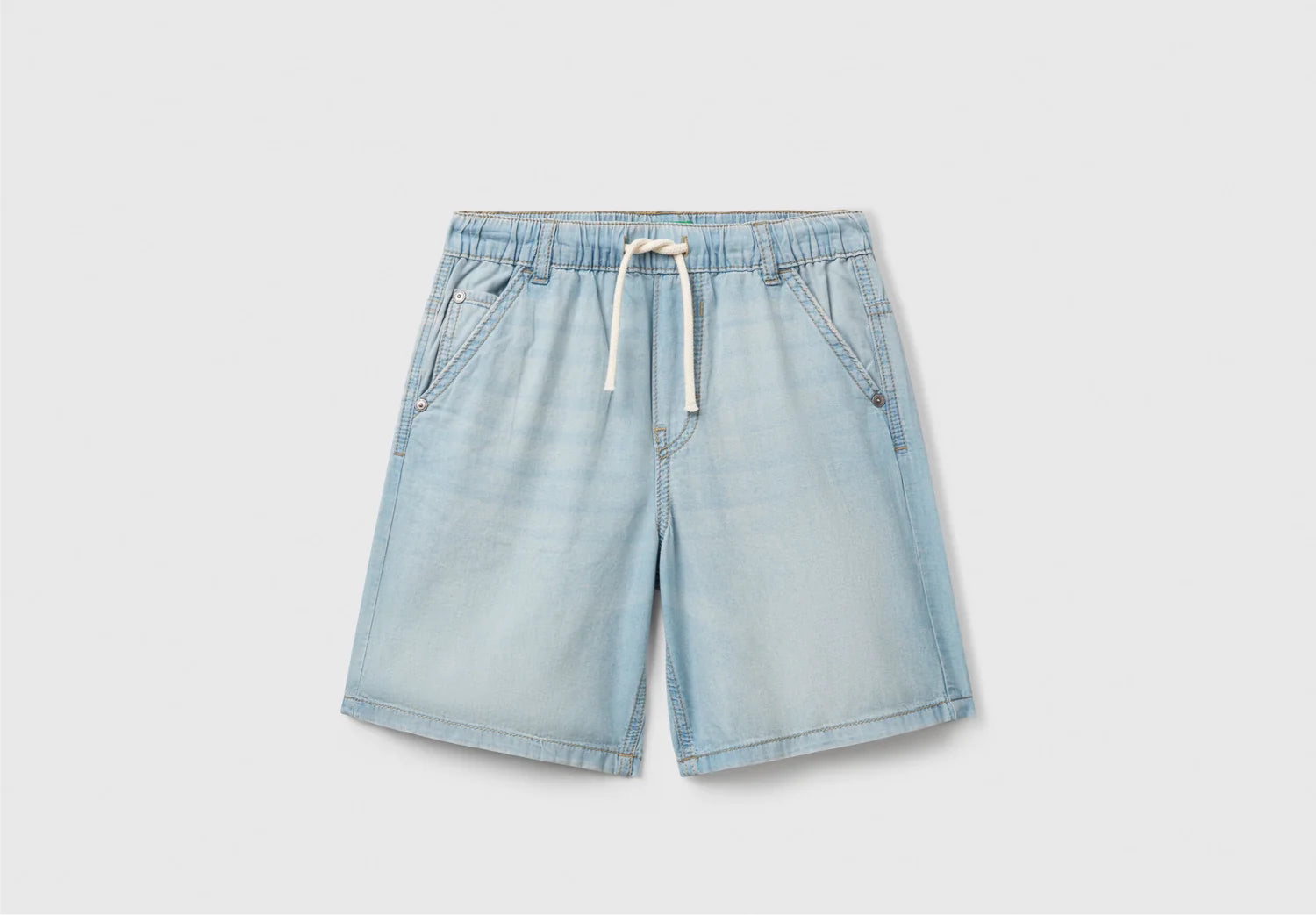 Pantalones cortos con cintura elástica interna y cordón, bolsillo de parche en la espalda con logotipo impreso. Diseño de cinco bolsillos, cintura con elástico interior y cordón. Ajuste recto, para una pieza imprescindible en los meses más cálidos.