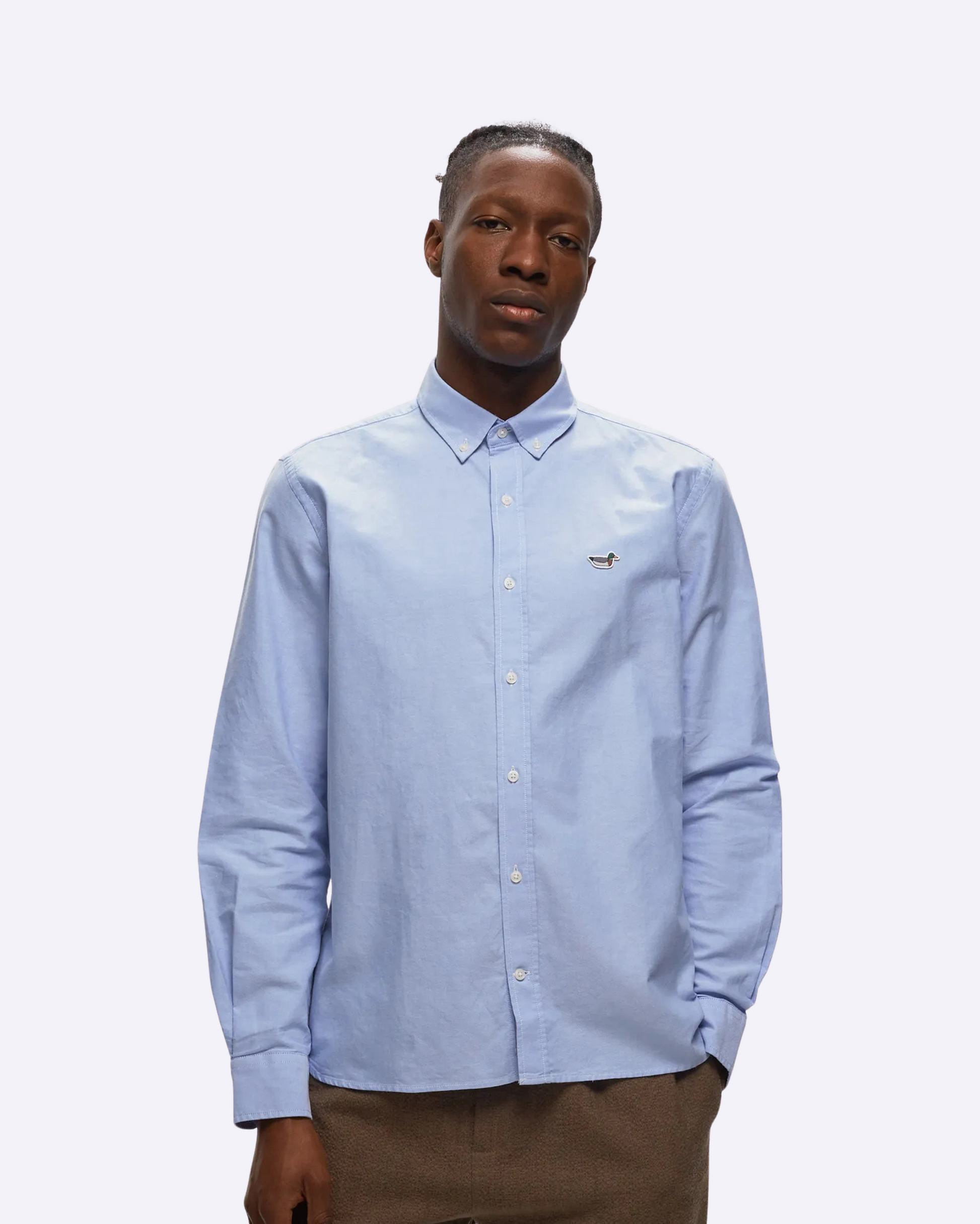 La camisa Edmmond Studios BD duck patch plain light blue en azul celeste de manga larga forma parte de la colección clásica de las camisas Edmmond de algodón orgánico 100% que están hechas en España y confeccionadas en Portugal. Con corte regular fit.