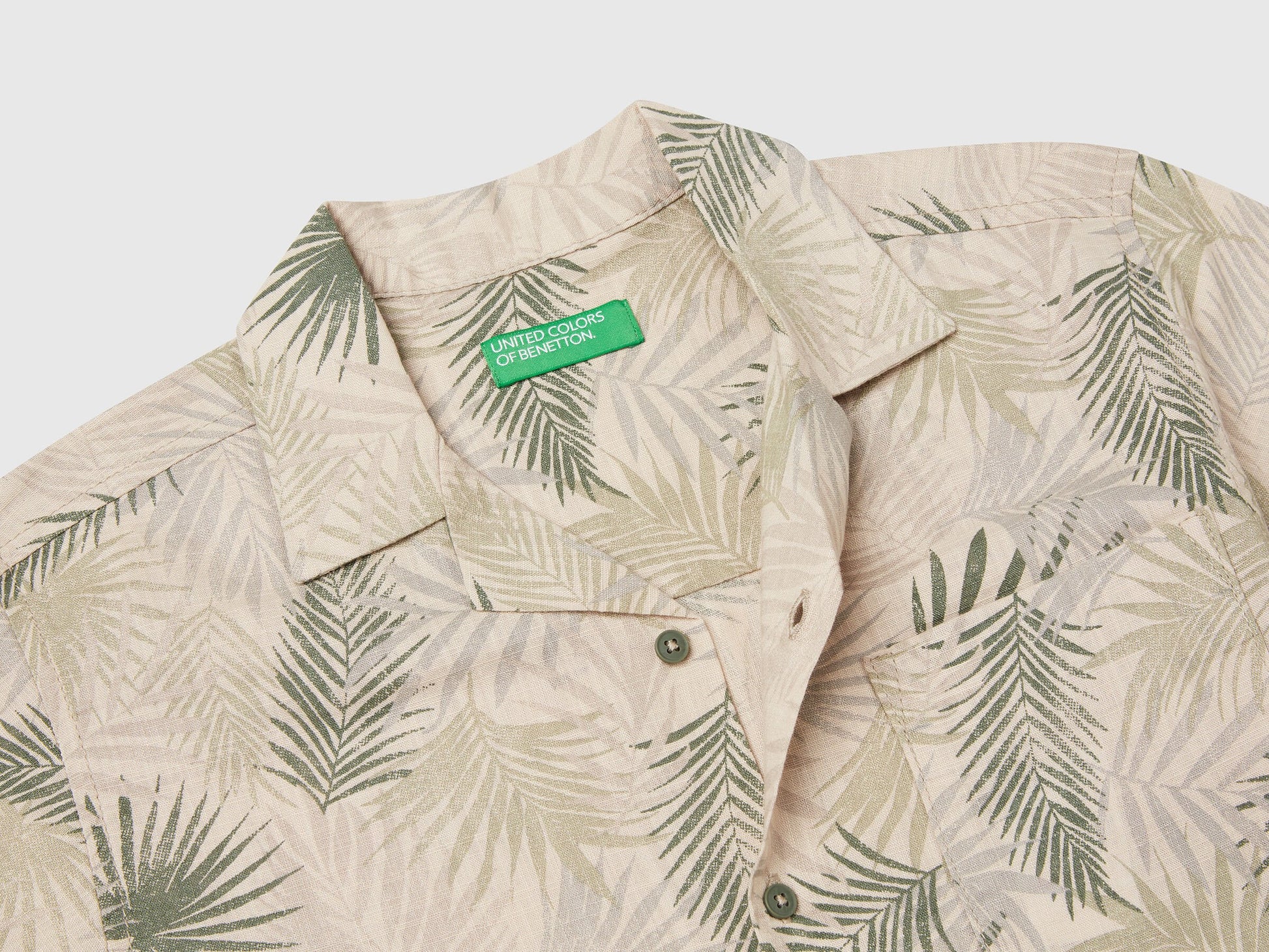 Camisa de manga corta en tejido ligero de puro algodón. Cuello clásico, botonadura frontal y bolsillo de parche en el lado del corazón. Aberturas laterales y estampado tropical integral. Para outfits dinámicos y alegres.