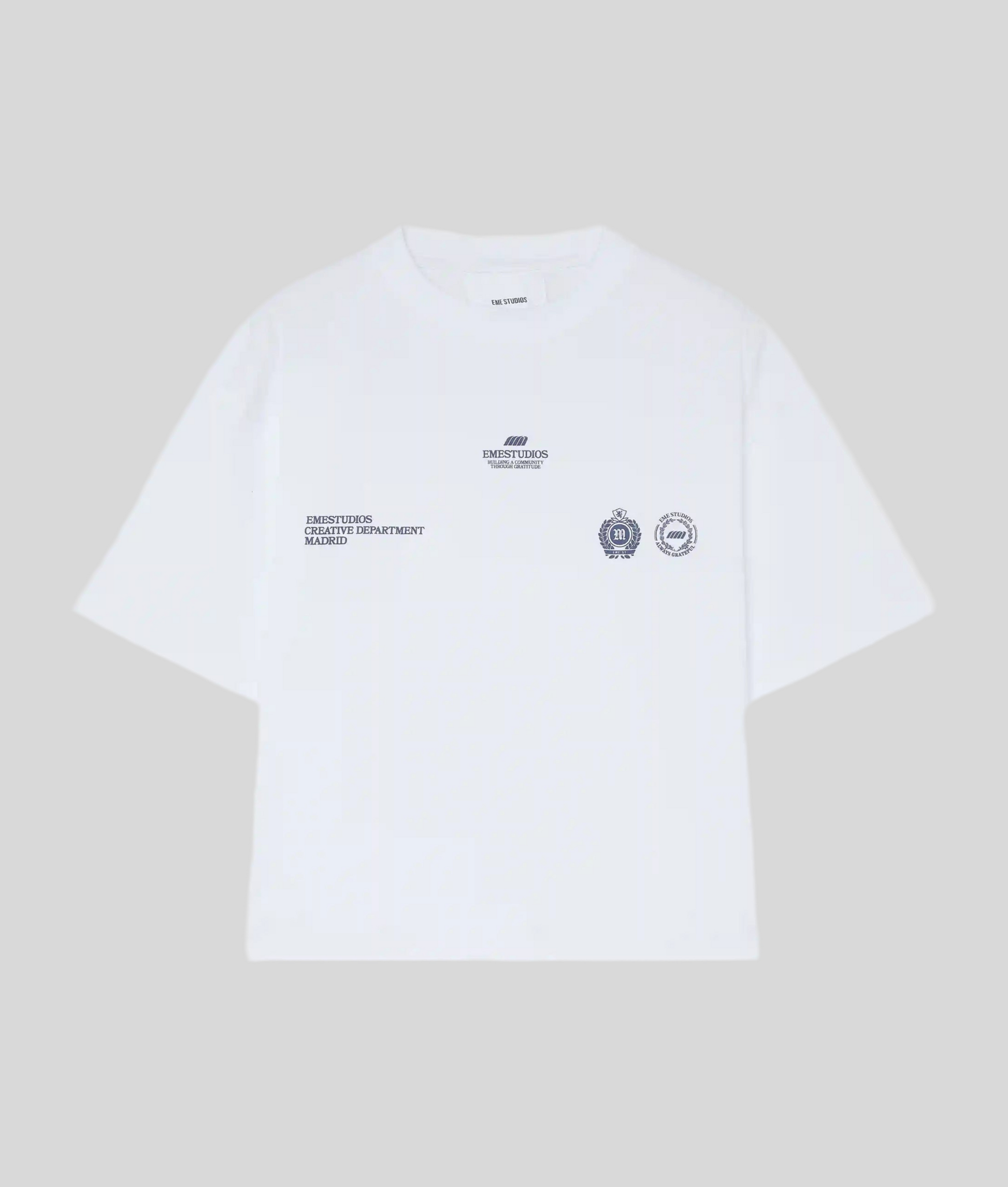 Gran gráfico "EMESTUDIOS CREATIVE DEPARTMENT" en la parte posterior