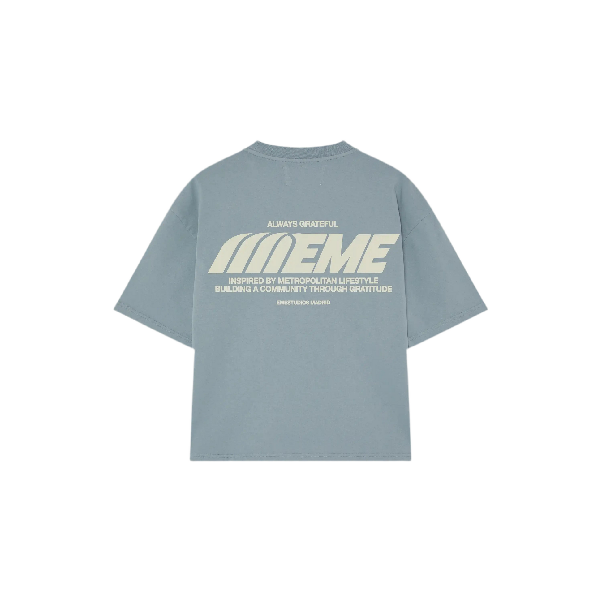 La parte delantera presenta impresiones de texto minimalistas, mientras que la parte posterior muestra un gráfico llamativo con letras para un aspecto distintivo. Diseñado con un ajuste relajado y hombros caídos, combina la comodidad diaria con un ambiente de streetwear contemporáneo.