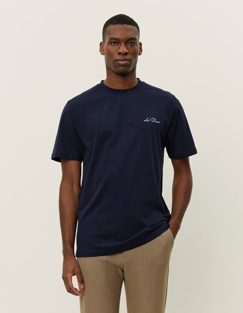 Una pieza fácil de usar para el verano, esta camiseta está terminada con bordados de estilo vintage en la espalda, una firma Crew en el pecho y una costura fuera del hombro.