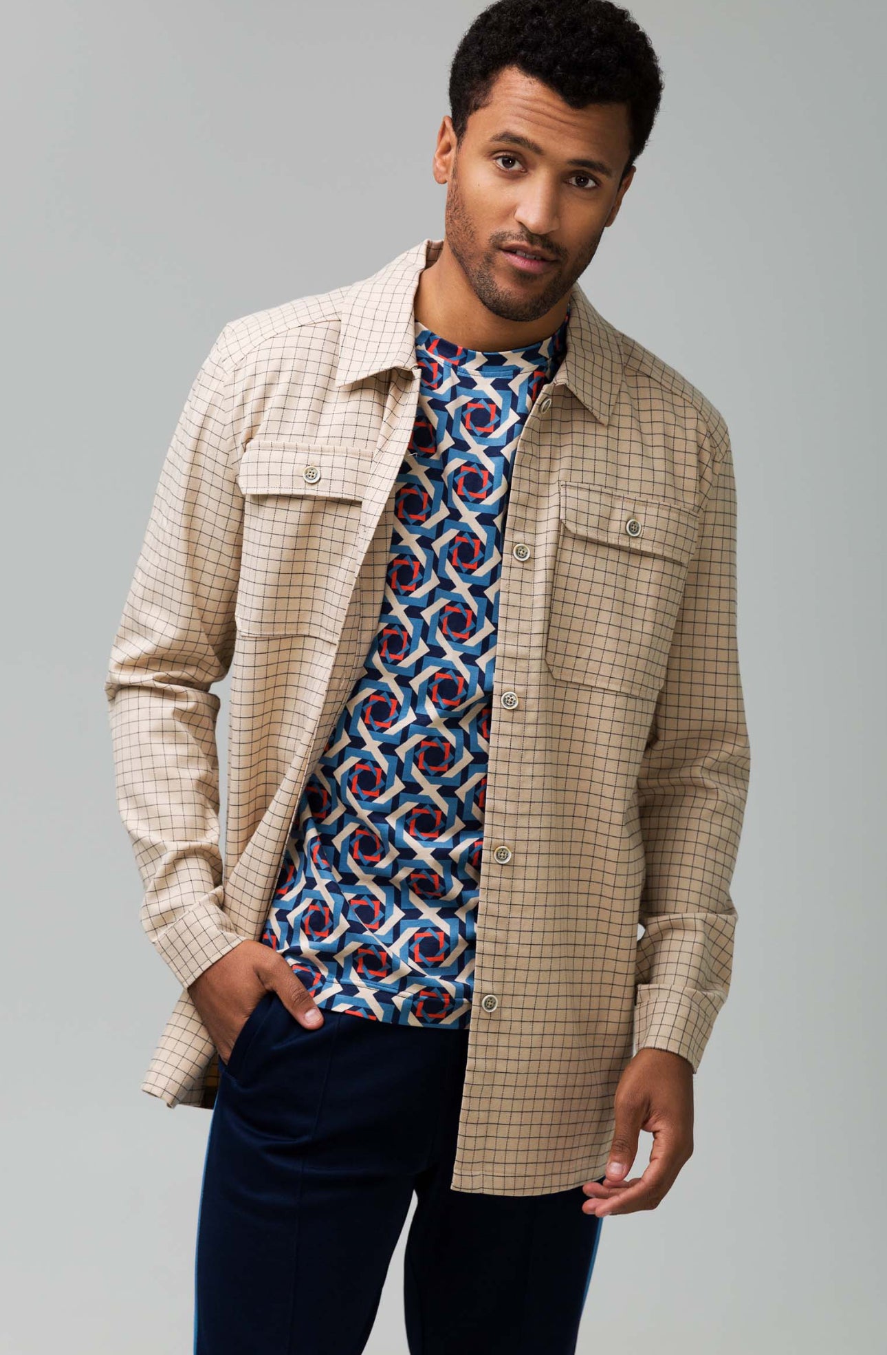 Sobre camisa manga larga a cuadros con botones, 64% poliéster, 34% viscoso, 2% elastane
