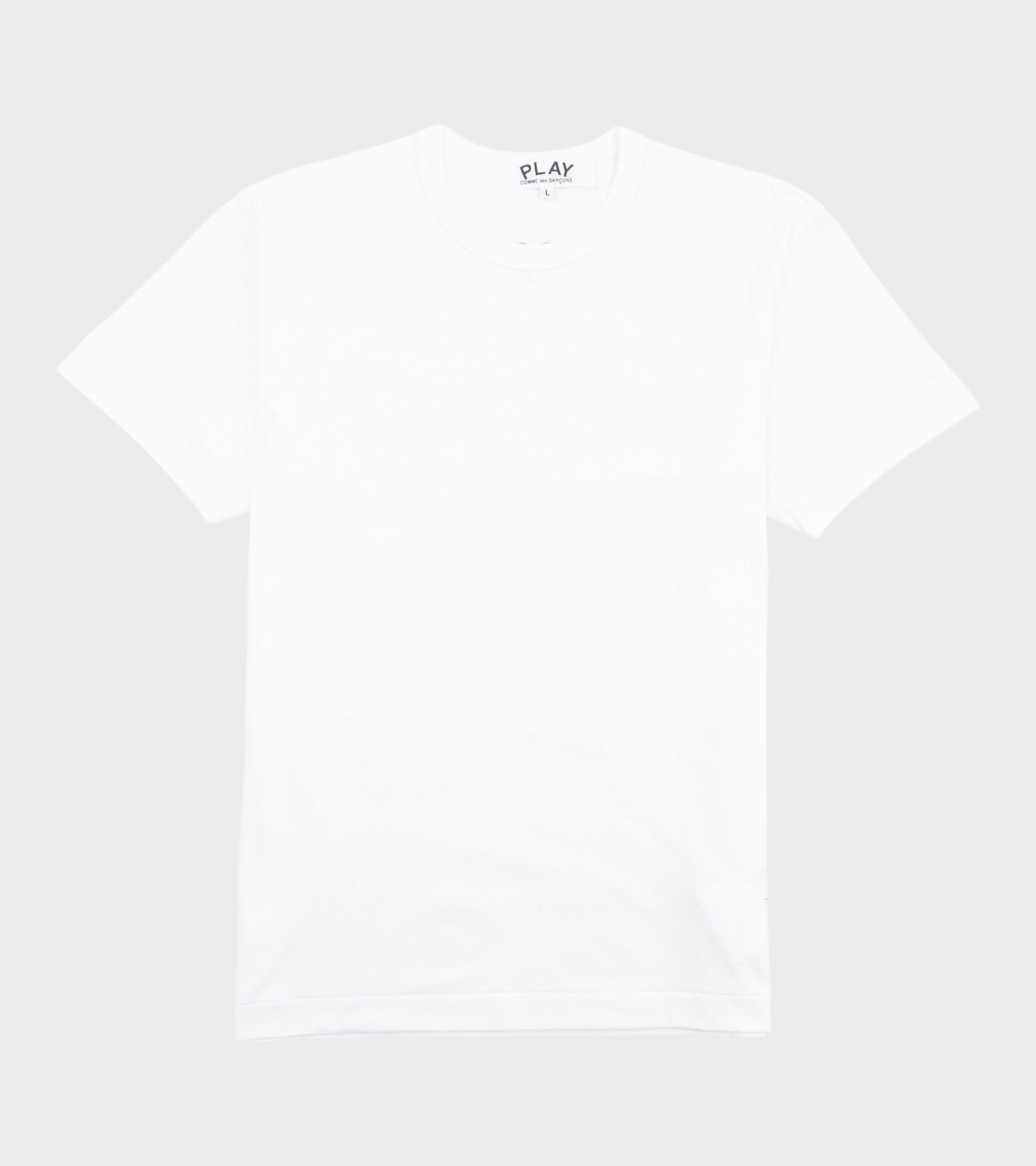 Camiseta de manga corta de color blanco. Cuello redondo de canalé. Dobladillo recto. Logo bordado en la parte posterior. Logo del corazón con ojos, diseñado por el artista gráfico neoyorquino Filip Pagowski y por Rei Kawakubo de Comme des Garçons. 100% algodón. Hecho en Japón. Recomendamos una talla más que tu medida habitual.