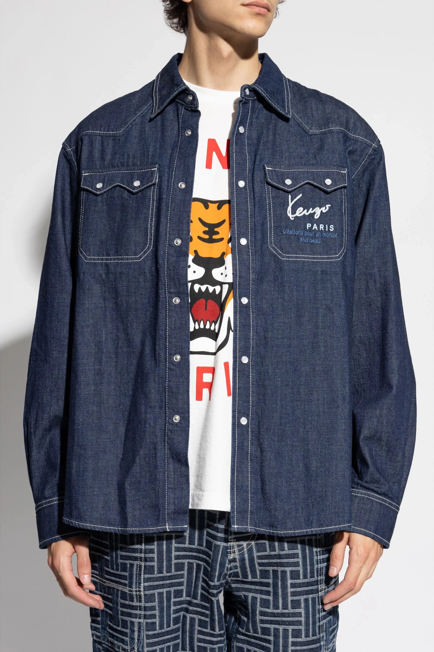 La camisa de Jean Kenzo en color azul claro es perfecta para un look informal y elegante. Hecha de algodón de alta calidad, cuenta con un logo bordado en el pecho, cuello clásico y cierre de botones en la parte delantera. Sus mangas largas y puños con botón añaden un toque sofisticado, mientras que los dos bolsillos en el pecho y el dobladillo curvo le dan un estilo moderno. ¡Haz una declaración de moda con esta camisa Kenzo!